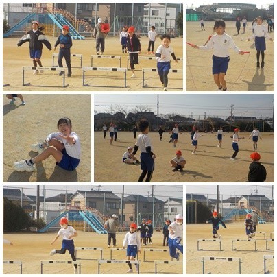 体育では、ハードル走となわとびの学習を行っています。ハードルでは、リズムよく跳び越えることや、歩幅を意識して走ることをめあてに取り組みました。最初は高さや間隔に戸惑う様子もありましたが、友達の動きを見てまねをしたり、声をかけ合ったりしながら、少しずつコツをつかんでいました。なわとびでは、前とびやあやとび、二重とびなど、それぞれが自分の目標に向かって練習しました。「昨日より多く跳べた!」「新しい技ができた!」と、うれしそうな声がたくさん聞こえてきました。寒さに負けず、体をたくさん動かしながら、楽しんで学習に取り組んでいます。
