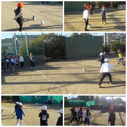 外体育の様子です。ボールを正確に蹴ったりドリブルをしたりと、基本となる練習をしています。最近はさらに気温が下がってきましたが、授業が終わるころには、汗をたくさんかいている子も多く、寒さに負けずにがんばることができています。2学期ものこりわずかですが、みんなで楽しく健康にすごしましょう!!