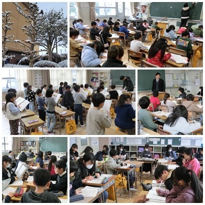 今朝は雪が積もる中での登校でした。