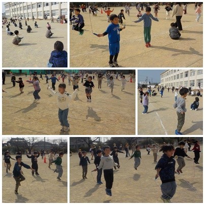 今日は、なわとび集会でした。強風の中でしたが、今までの練習の成果を発揮し、それぞれに力を出し切り頑張りました。途中で失敗してしまった子も最後まで残った子を懸命に応援し、温かい雰囲気の中取り組むことができました。結果が楽しみですね!