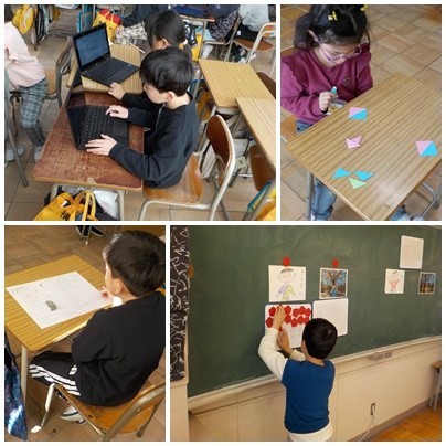 今週から、なわとび集会が始まりました。これまでの練習の成果を発揮して、一生懸命、頑張る姿が見れて、うれしかったです。また、授業でも、学習に向かう姿が見られました。1年生は、具体物を用いた足し算、引き算や図形の学習を行い、3年生は、身近なものの重さを見たり、持ったりして、自分が普段使っているものの重さを改めて、実感することができました。今日も一日、よく頑張りました。