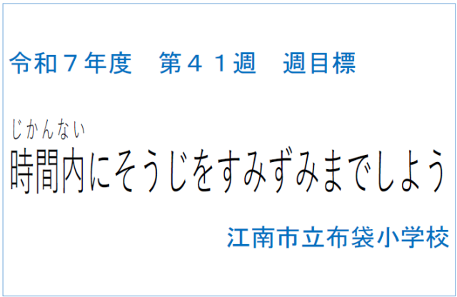 今週の週目標は「時間内にそうじをすみずみまでしよう」です。一年過ごした場所をきれいにして気持ちよく過ごしましょう。