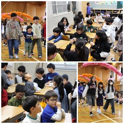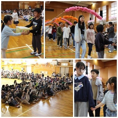 4月15日に1年生迎える会を行いました。6年生のペアのお兄さん、お姉さんから名刺をもらい、お互い自己紹介をし合いました。1年生が楽しく学校で過ごせるよう、アサガオの種のプレゼント、クイズ、歌のプレゼントを用意してくれました。1年生のみんなはとても嬉しそうな様子でした。