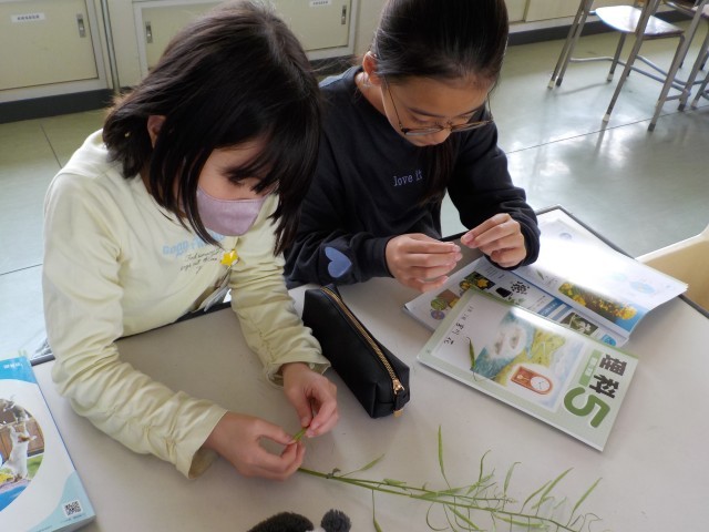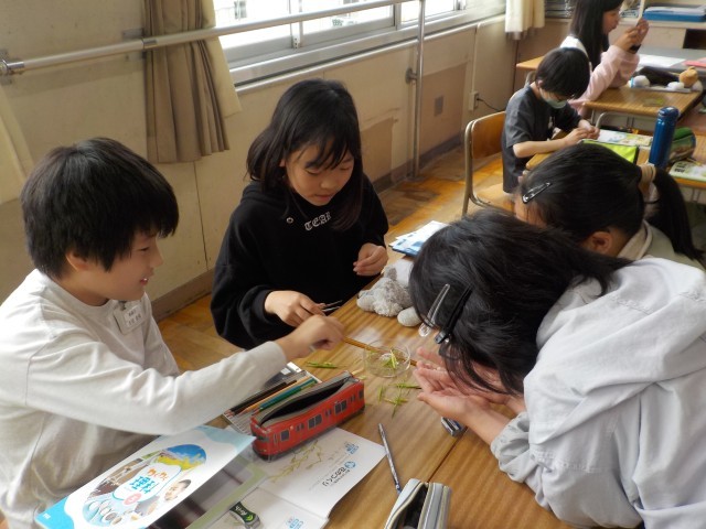 理科の学習ではアブラナの若い実を割って中身を観察しました。