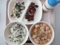 今日の給食は、カレーうどん・牛乳・いなりもち・ブロッコリーのおかか和えです。