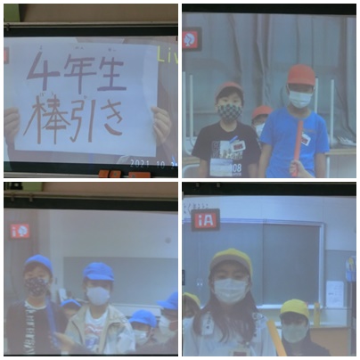 今日の応援週間は4年生でした。ライブ放送で各クラスの代表者が「竹取物語2021(棒引き)」の意気込みを話しました。