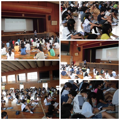 今日は4時間目に学年集会を行いました。前後、左右の距離を十分にとり、体育館で行いました。野外学習を中心に話がありましたので、熱心にメモを取りながら話を聞く姿も見られました。近日中に、係も決めていきます。素晴らしい野外学習になるよう、しっかり事前準備をしていきましょうね。