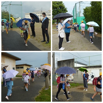 あいにくの空模様となってしまいましたが、笑顔で挨拶を交わし、元気に1日をスタートすることができました。