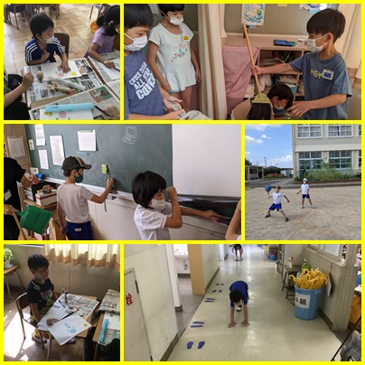 今週の週訓は「そうじをしっかりしよう」です。6年生がいない中、5年生の子が掃除の手伝いに来てくれました。学校をきれいにしようと、協力して一生懸命掃除に取り組んでいます。