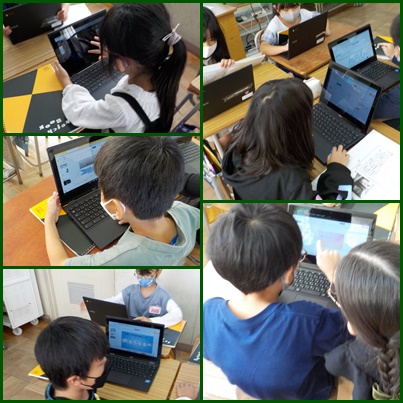 町たんけんを終え,ほてっこ学習発表会に向けての準備を始めています。グループに分かれて,スライドを作成しています。みんなで意見を出し合い,協力する姿が見られました。スライド作りの手際がよくなり,完成が楽しみです。