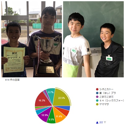 9月30日に,第1回H-1グランプリの本戦が行われました。多くの応募の中から頂点に選ばれたのは,「ヤママサ」の二人でした。全校児童の投票のうち,183票を集めました。さすが,笑顔委員会委員長率いるコンビです。2位は133票を集めた5年生コンビの「シオとカトー」でした。