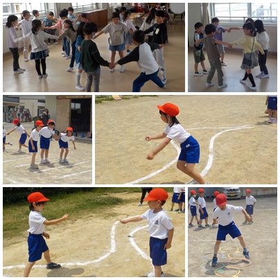 今日も暑い日になりましたが、子ども達は元気よく外で遊んだり、音楽や体育で体を動かしたりしました。音楽では、「ひらいたひらいた」の曲の歌詞の意味に合わせて花になりきりました。体育では、「とびあそび」で川とびをしたり、ケンケンパをしたりしました。みんなで仲良く体を動かしながら楽しく学んでいます。これからどんどん暑くなりますが、水分を取りながら熱中症に気をつけて学んでいきましょうね。