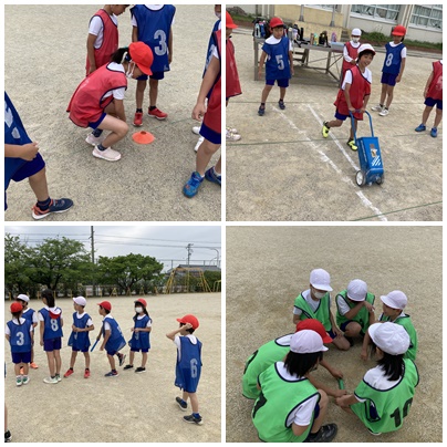 3年生の子どもたちは、外体育でリレーを行っています。止まったままバトンをもらわないことやバトンを渡す際は声をかけること、勝つために必要なことは何なのかを真剣に話し合うなど、学んだことを生かしながら取り組んでいます。また、リレーに使う物をもってくることや、ライン引きなどの事前準備も少しずつ自分たちでできるようになってきました。