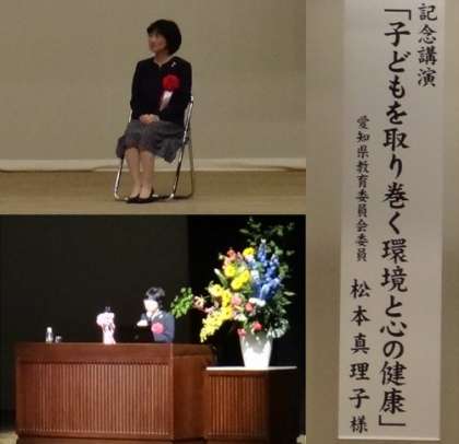 そこでは、愛知県教育委員会委員 松本 真理子先生の 「子どもを取り巻く環境と心の健康」と題する記念講演がありました。