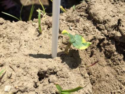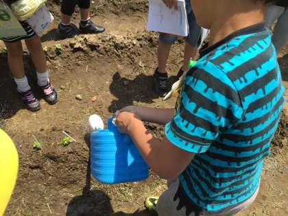 理科の学習で種をまいたオクラが芽を出しました。水やりをして大切に育てています。元気に育つといいですね!