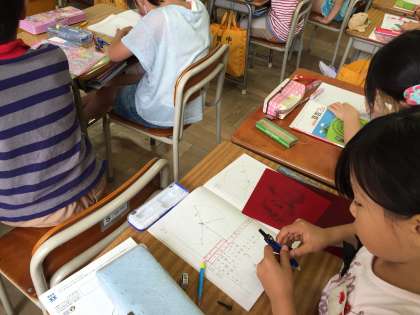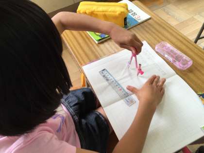3年生で、はじめてコンパスを使います!コンパスを使って円を描きました。また、円の半径、円の中心を学びました。さあ、どんどん使い方を練習して上手になりましょう!