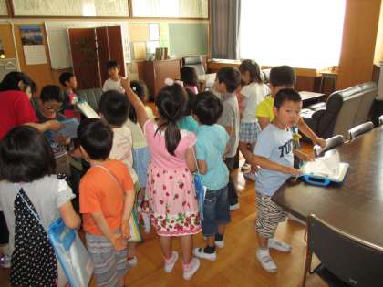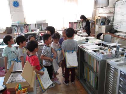 校長室と職員室を探検しました。なかなか入ることができない部屋なので、子どもたちのテンションはどんどん上がっていましたが、お仕事中の先生方もいたので、迷惑のかからないように見学をしました。
