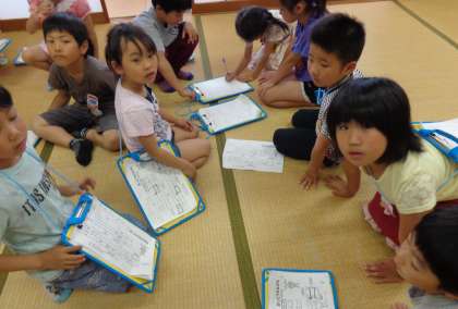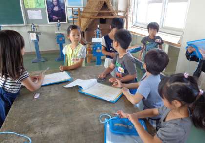 どちらも1年生ではなかなか使わない教室ですが、子どもたちは一生懸命「発見カード」を書いていました。