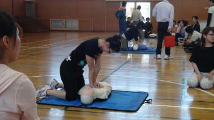 昨日、消防署の方をお招きし、救命救急法の実習を行いました。