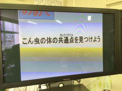 昆虫の体のつくりの共通点を考え、昆虫とそうでないものを分類しました。仲間と考えを持ち寄り練り合いながら、共通点を考えました。授業の最後には、ダンゴムシとアメンボについて、昆虫かどうかを判断しました。昆虫の体に注目して、判断できるようになりました。