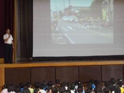 今朝は雨天のために全校練習が中止になり、体育館朝礼を行いました。