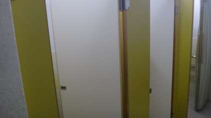 老朽化していた体育館のトイレの扉を修繕していただきました。