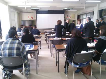 学校の多目的ホールに入りました。この後、前会長さんに活動報告をしていただきました。学校に戻ったら報告します。