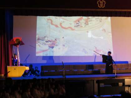 ほてっこ発表会児童鑑賞日、2番目に登場は、群読 「平家物語」4年生です。