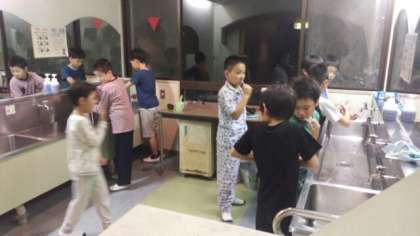 夜食を食べたら歯磨きです。