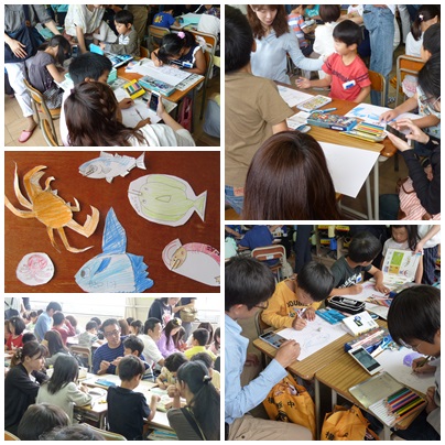 親子で「魚つり」のおもちゃを作りました。好きな海の生き物を一生懸命作りました。魚やカメ,イカ,タコなど,色も形も様々な生き物ができ上がりました。保護者の皆様,ご協力ありがとうございました。魚つりをするのが楽しみです。