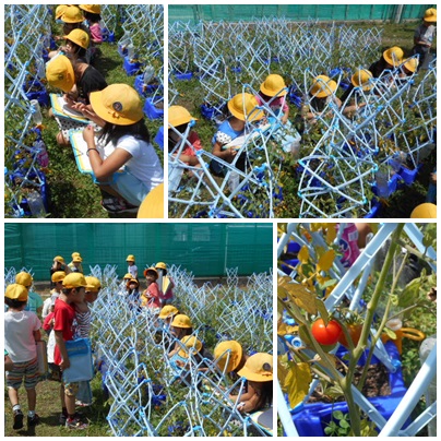 2年3組の児童が、国語の単元「かんさつ名人になろう」の学習で、生活科で育てているミニトマトの観察をしました。観察して気付いたことや分かったことをメモし、今後、文章におこしていきます。