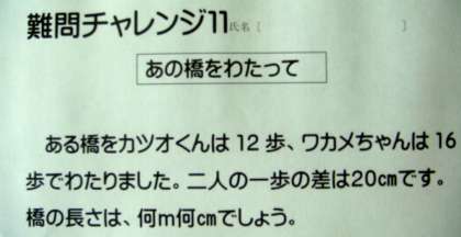 カツオくんやワカメちゃんの歩幅がわかれば、橋の長さがわかります。