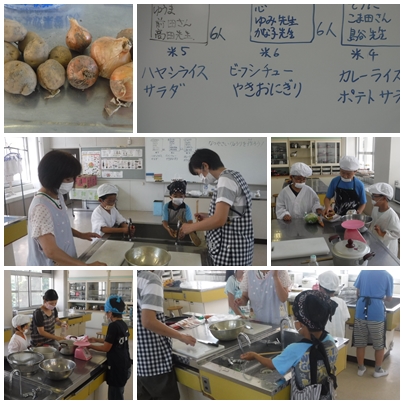6・7組が、畑でとれた収穫物と、昨日買い物実習をしたものを使って、調理実習を始めました。