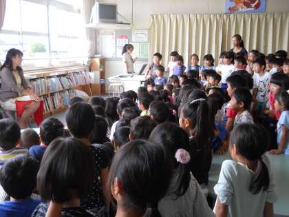 今日は,お話広場の日でした。メルヘンルームでポルトガルに伝わる話を聞きました。おばあさんと動物が出てくる話で,子どもたちはとても楽しく聞き入っていました。