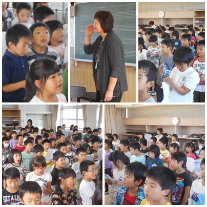 3時間目、2年生が、ほてっこ発表会に向けて、学年で歌の練習を行いました。