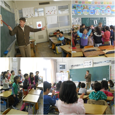 7日(火)、1年1組ではグレッグ先生と英語に親しみました。