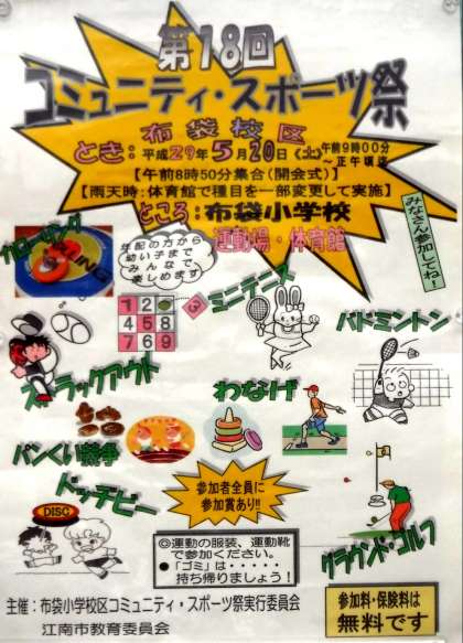 第18回コミュニティスポーツ祭 布袋地区は本日開催です。