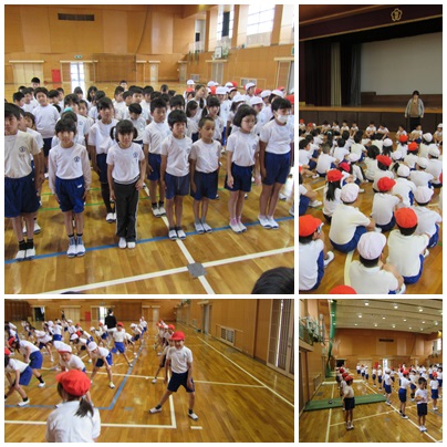 今日は運動場の状態がよくなかったので、体育館で立ち幅跳びを行いました。