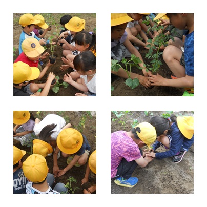 本日、ほてっこ農園で苗植えをしました。ナス、ピーマン、ミニトマトに加え、きゅうり、オクラを植えたのですが、どうやら子ども達は苗植えが得意なようです。二回目にして、手際よく植えてくれたので、予定よりも早く終わることができました。きっと元気に育ってくれるはずです。