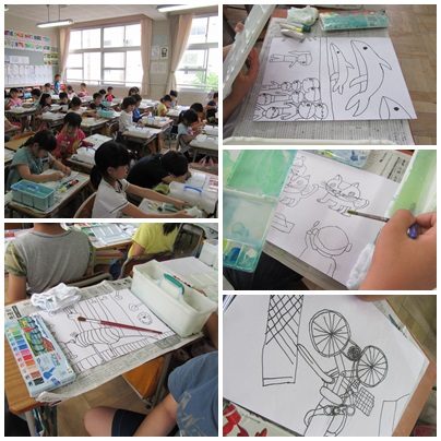 丁寧に下書きを書いた後,絵の具を塗る工程に移ります。