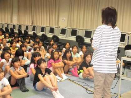 1枚目 野外学習を前に,女子児童が保健の先生から,初潮・生理に関する授業を受けました。皆,自分の体に関すること。真剣に聴いていました。