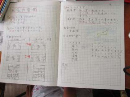 3枚目 勉強もがんばっています。理科では,ノートのまとめ方を学び,単元のまとめを各自行いました。表や図,グラフを利用して,一生懸命にまとめました。