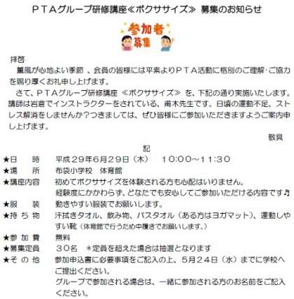 PTAグループ研修講座 《ボクササイズ》 しめきります