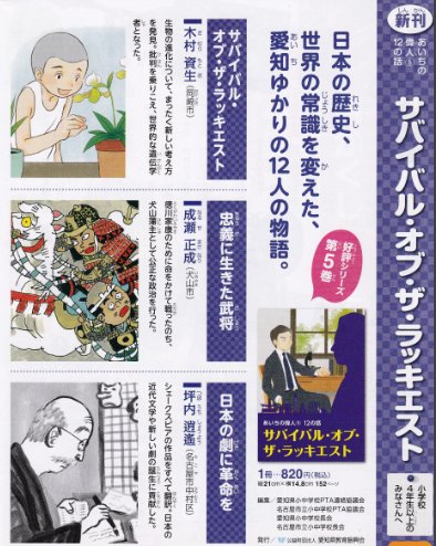 夏の読み物(高学年用)あいちの偉人5『サバイバル・オブ・ザ・ラッキエスト』の申込み票を配付してあります。