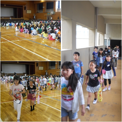 朝礼が終わって教室に戻る際も、しっかりと整列して戻っています。