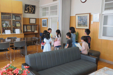 今日は、生活の学習として、1・2年生が校長室を探検してくれました。