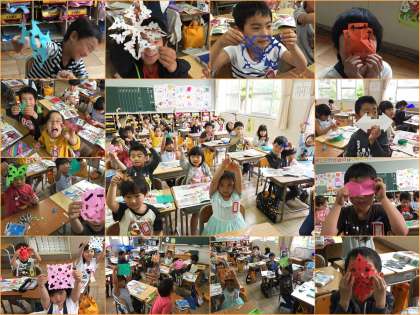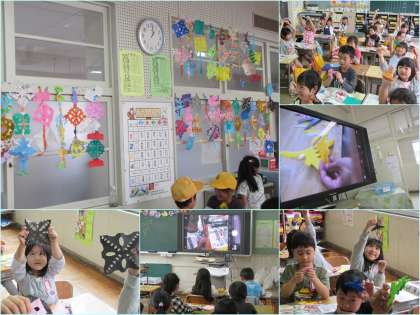 イロトリドリのかざりが集まり,教室があざやかになりました。