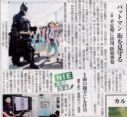 昨日、布袋小学校近くに現れたバットマンが、中日新聞尾張版に紹介されました。