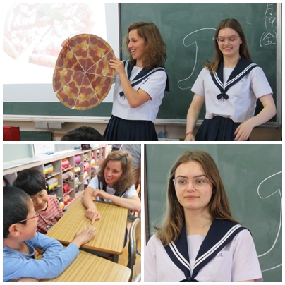 イタリアから今年3月より日本に滞在しているエミリー(ピザを持っている方)です。