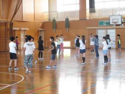 3枚目 休み時間は体育館に集合してトワリングの練習です。当日が楽しみです。